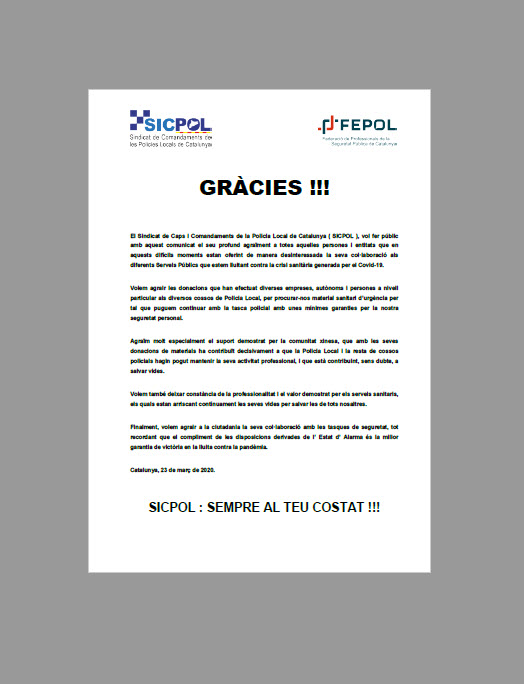 A totes aquelles persones que esteu fent, amb les vostres aportacions, que la feina dels membres del Cossos i Forces de seguretat sigui més segura, GRÀCIES!
