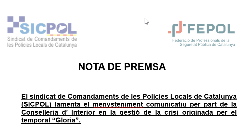 SICPOL denuncia el menysteniment en la gestió comunicativa del Glòria vers les Policies Locals de Catalunya