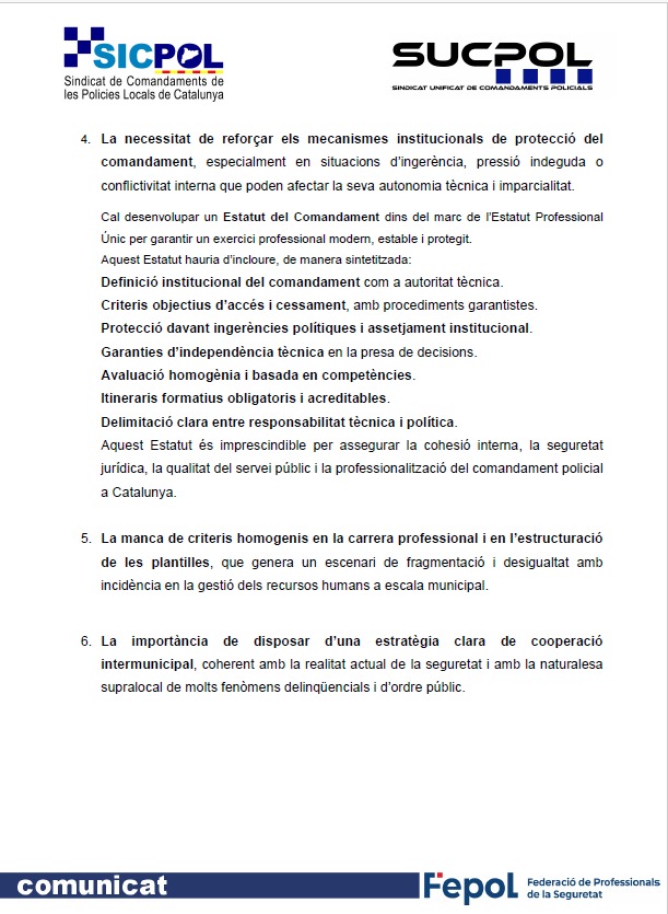 Volem posar damunt de la taula les nostres preocupacions, els nostres neguits i la voluntat ferma dels dos sindicats de defensar la dignificació professional, la cohesió interna i la viabilitat del sistema de seguretat pública local a Catalunya.